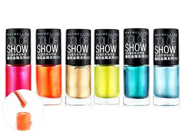 美宝莲纽约色秀指甲油酷炫金属系列饱和色调,金属光泽,颜色更潮流时尚,T台潮流炫色,闪耀指尖。刷头不太窄,不太宽,易于控制,更有利于将指甲油涂抹均匀,但质地看起来略微稀薄。本次试色的色号是:900、910、920、925、930。